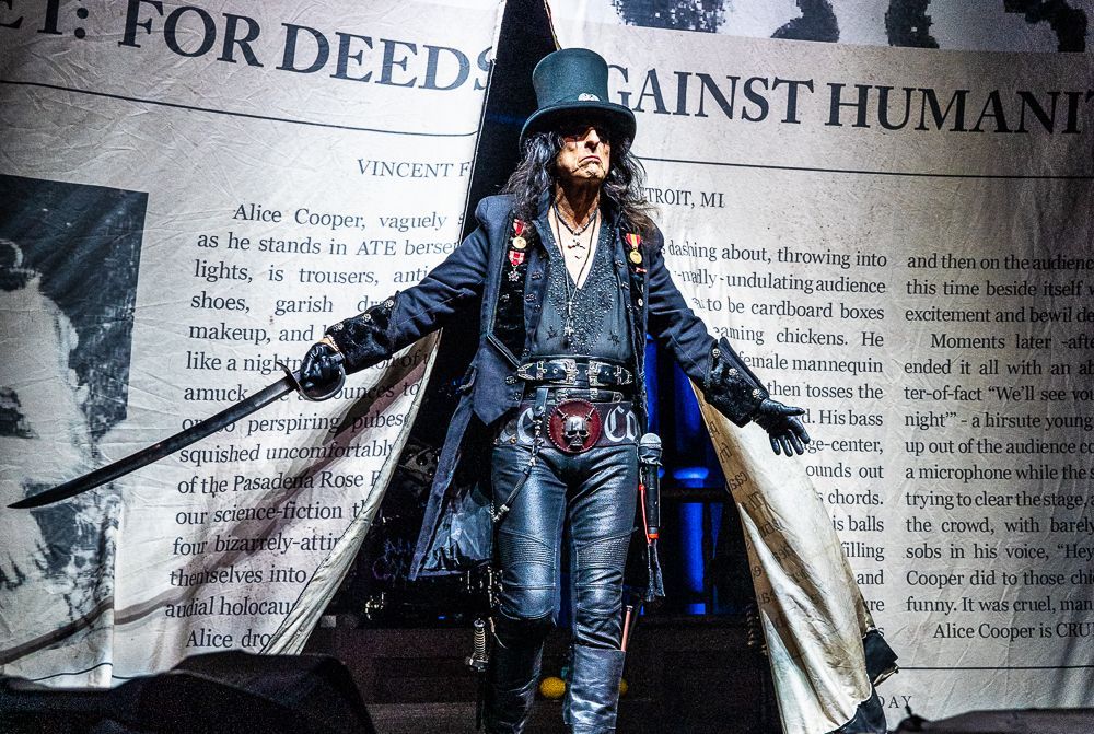 Alice Cooper's concert at the Rose Music Center in Huber Heights, OH, on the "Too Close For Comfort Tour" was nothing short of a rock 'n' roll spectacle. With no opening act, the anticipation in the crowd was palpable, and from the moment Alice took the stage, it was clear that this would be a night to remember.